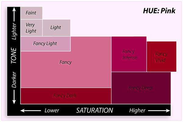 Pink diamond’s colour: hue, tone and saturation
